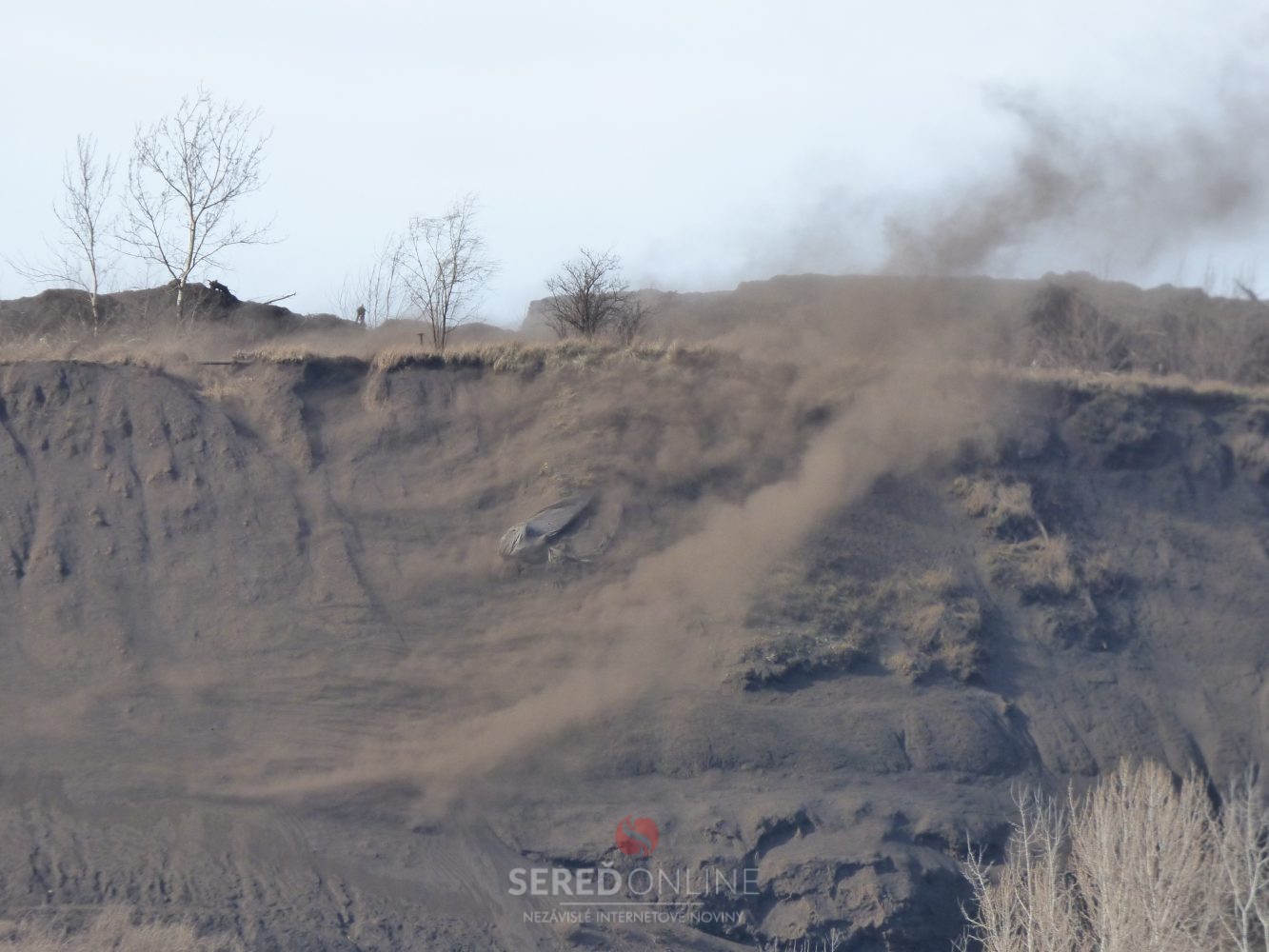 Na mieste pri halde lúženca sme sa boli pozrieť s kamerou. Zo záznamu je presne vidieť ako vietor odfukuje nezatrávnenú a nepolievanú časť odpadu a tento vo víre odnáša do ovzdušia.